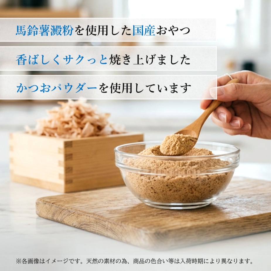 馬鈴薯澱粉、かつお粉末、植物性油脂(菜種油・パーム油)