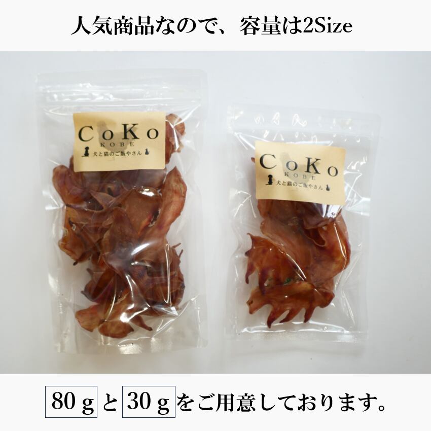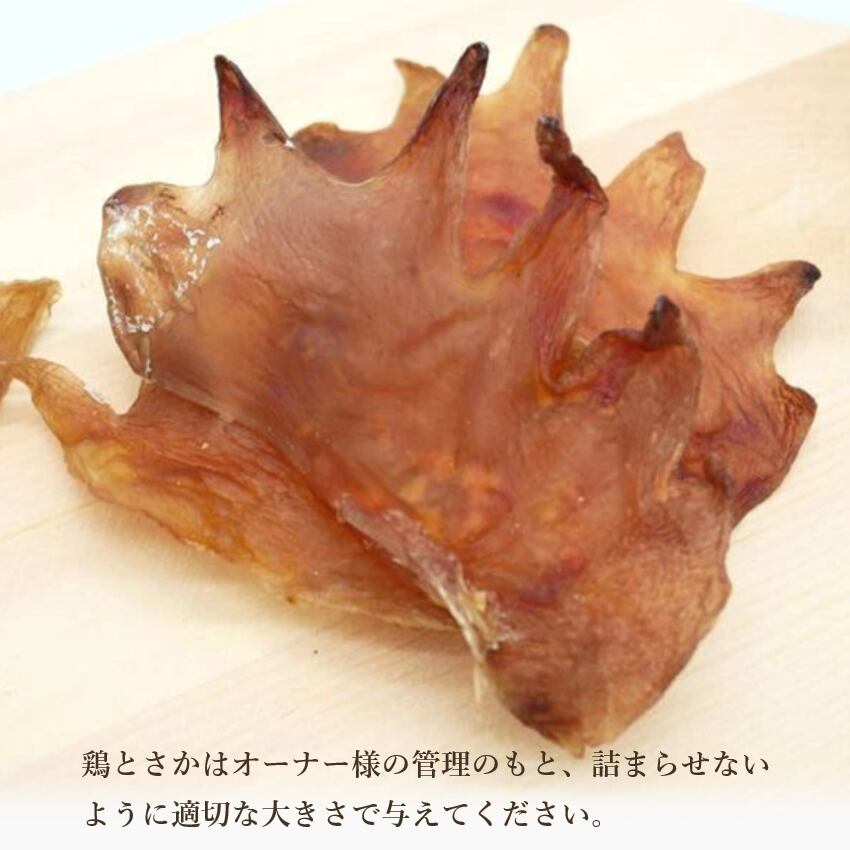 国産鶏とさかをじっくり乾燥させたほどよい硬さで、香りのよいおやつです。