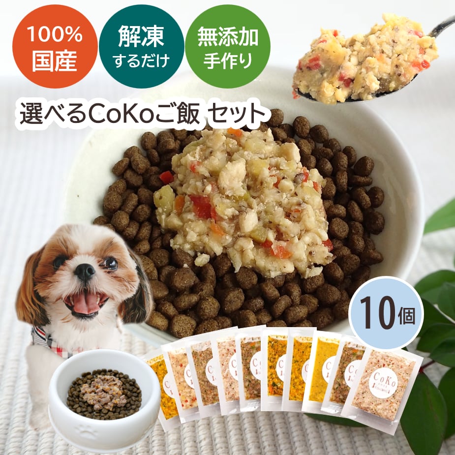 Cokoオリジナル ドッグフード用トッピング 7種から選べる10個セット 無添加 国産 手作り食 冷凍 (50g×10pack)Selectable