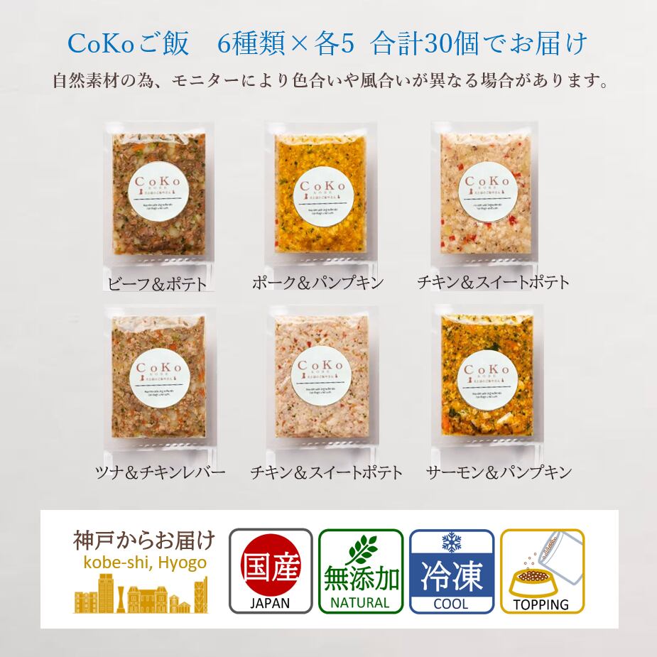 CoKoオリジナル ドッグフード用トッピング 1か月セット 無添加 国産 手作り食 冷凍 6種セット×5 (50g×30Pack)One month's worth