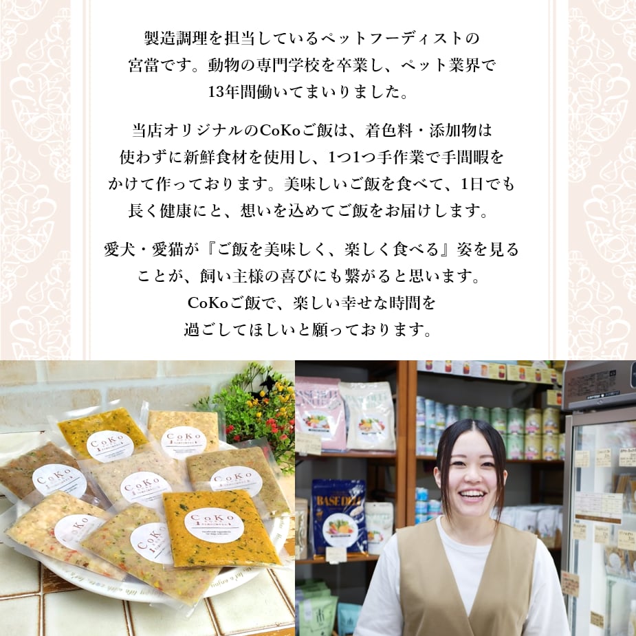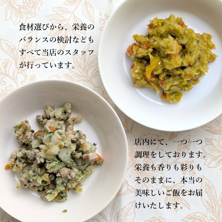 ※こちらは要冷凍保存の商品です。クール品と常温商品(ドライフードやおやつ)は同梱配送ができません。解凍後は冷蔵保存で2日以内にお使い下さい。(冷蔵解凍又は湯煎解凍可能)