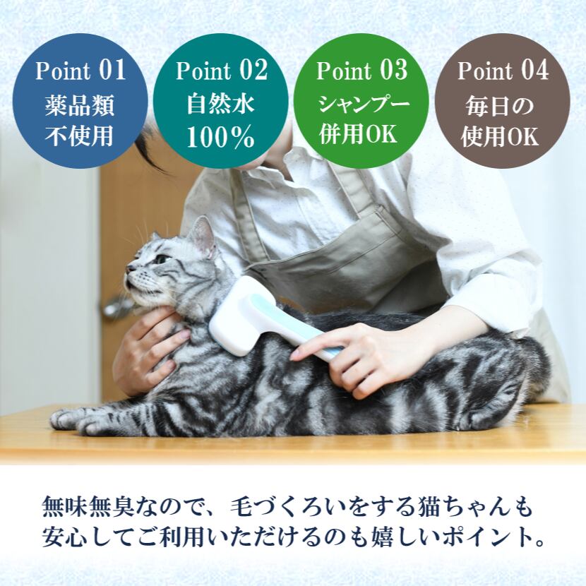 Pet-Cool は自然水を特殊工法で電気分解した『お水』で、水道水の『お水』と見た目だけでは何も変わりません。お肌や被毛の細かい部分の汚れも、粒子の細かいPet-Coolがお肌の毛穴のすみずみまでしっかり浸透し、汚れを浮き上がらせます。